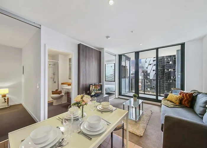 Perfectly Located 2Br Apartment By Southern Cross lägenhet är belägen i distriktet Melbournes centrum, och erbjuder boende med utsikt över staden. Viva Energy Corporate Office ligger 5 minuters promenad bort, och O'Brien Group Arena ligger 25 minuters gångavstånd från boendet.